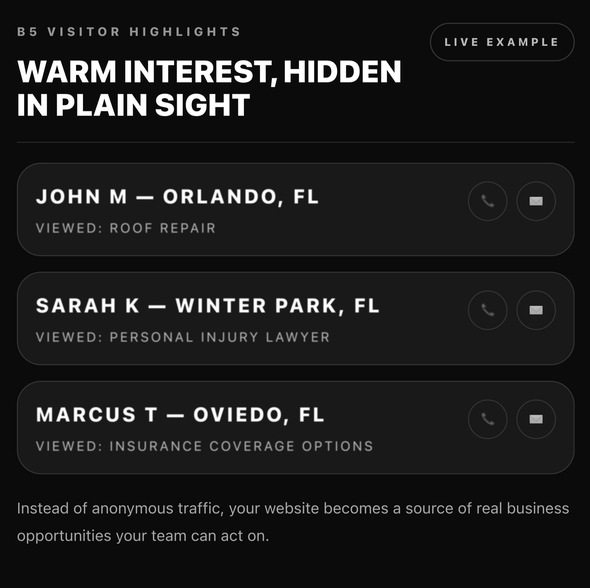 Choose a flexible monthly package and work directly with Del and the B5 team. Let’s build your brand and bring in leads — together.